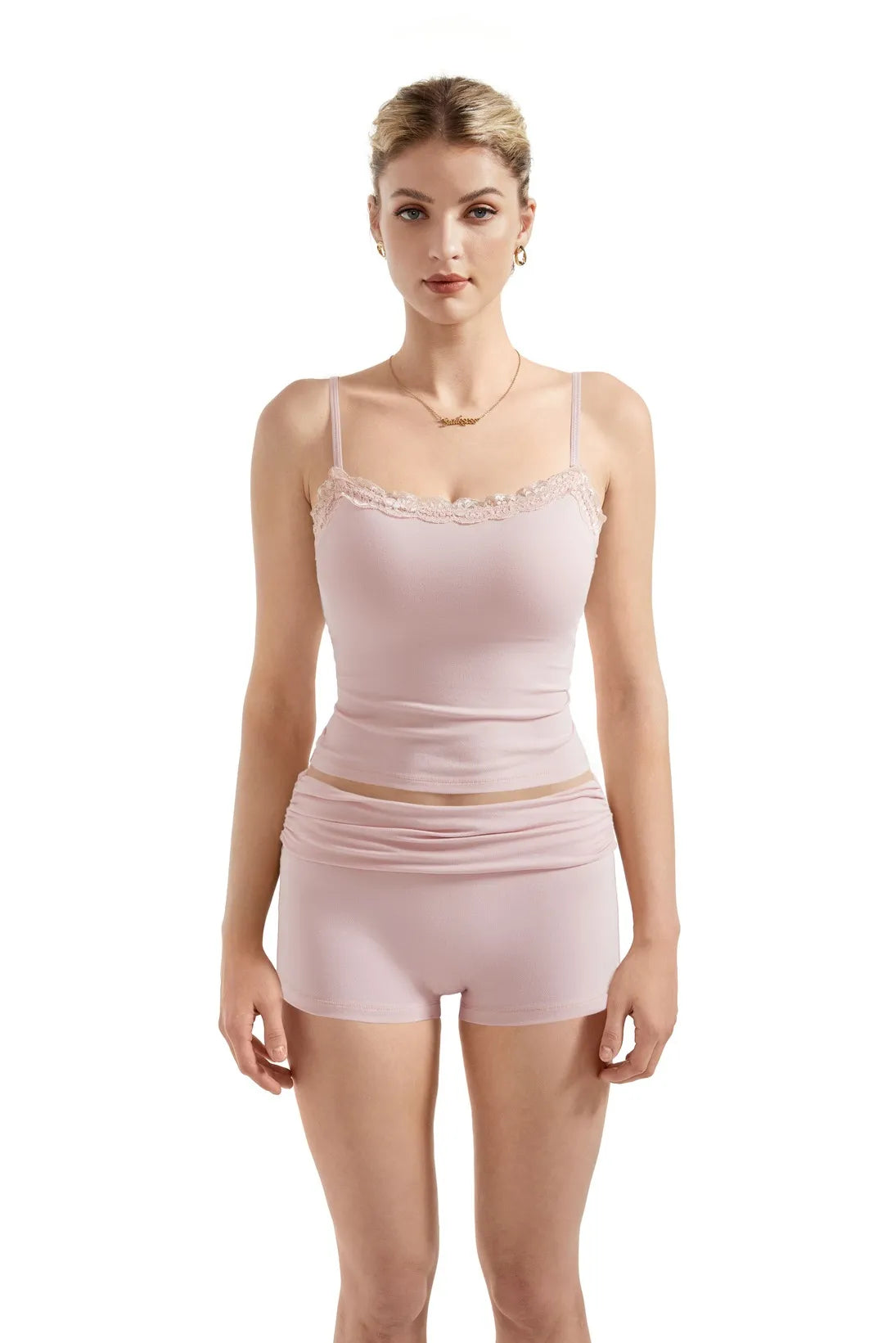 ルームウェア・パジャマ Ribbon Leavers Lace Camisole Set No Boundaries Lace Cami and Shorts Sleepwear Set, 2-Piece