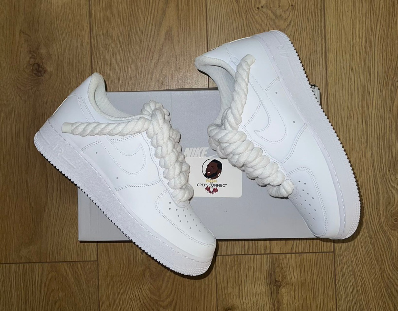 靴 NIKE AIR FORCE 1 WHITE ROPE CUSTOM Nike Air Force 1 One with Rope Laces in All White colorway