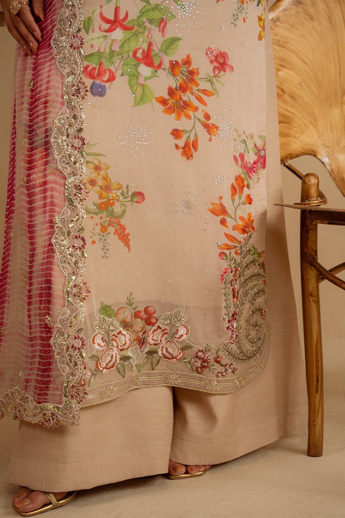 Printed Chiffon Front With Stone Work