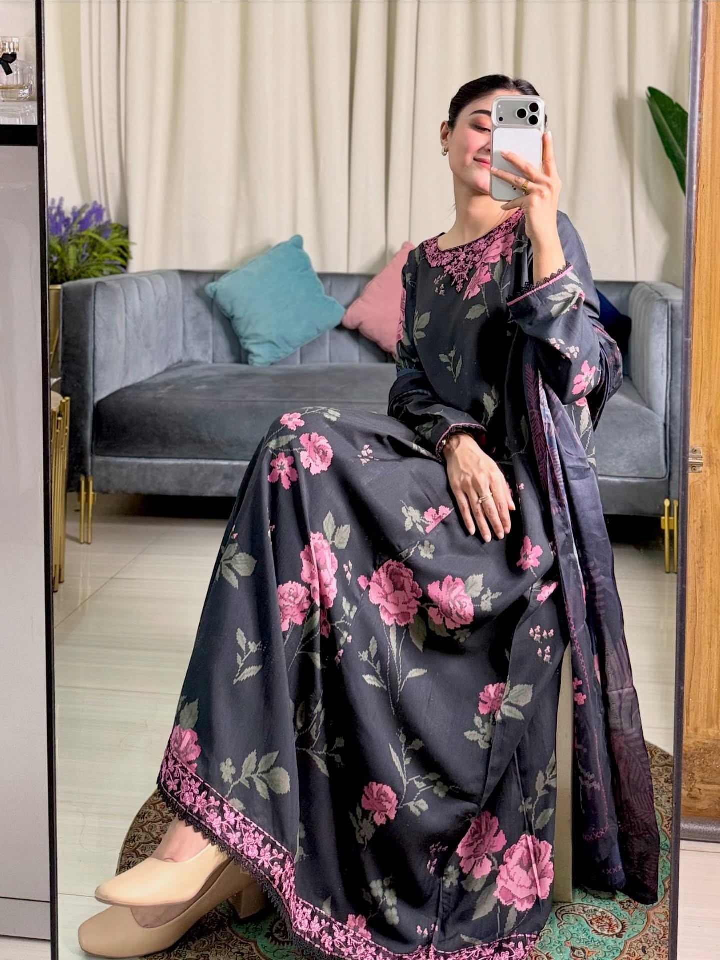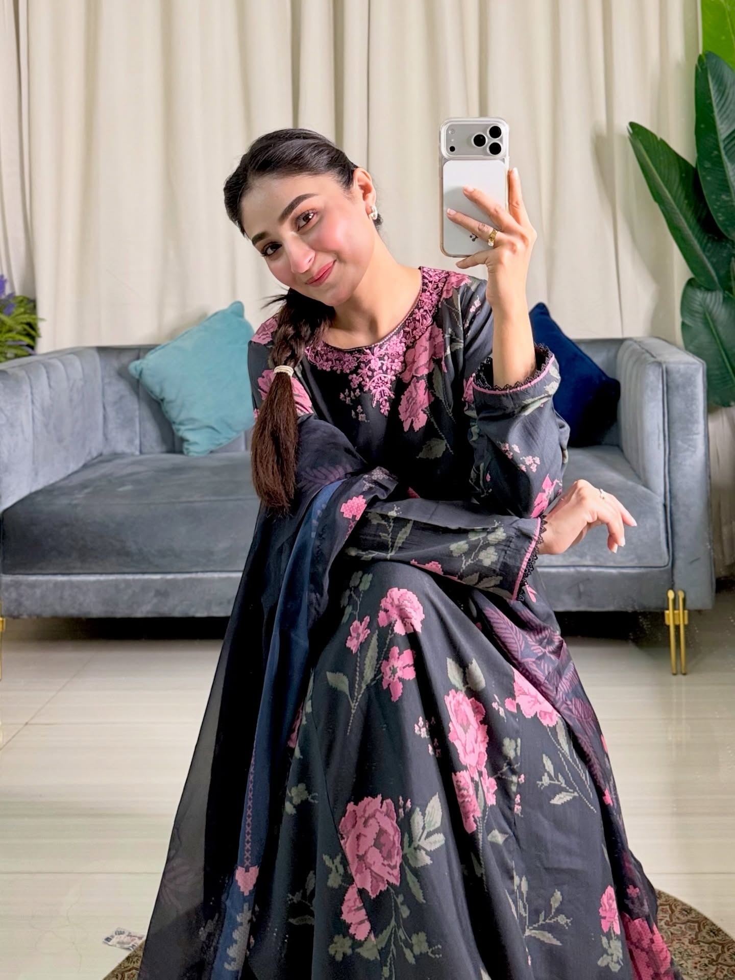 Printed & Embroidered Viscose Silk Gown